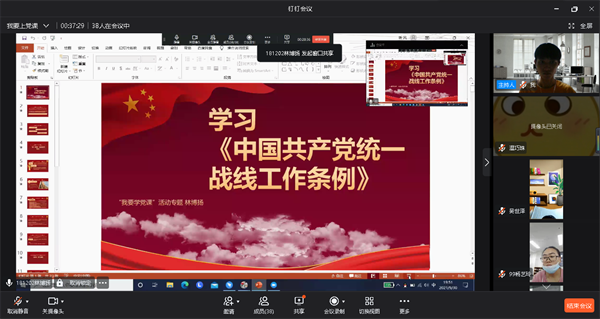 9月30日,威廉希尔官网员工党支部于线上开展以《中共共产党统一战线工作条例》为主题的专题学习会,支部全体党员参加此次会议,会议由郑薇同志主持。