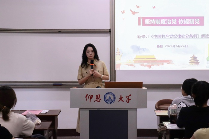 为贯彻落实全面从严治党要求,引导广大党员真正做到“学纪、知纪、明纪、守纪”。6月24日,公司党总支书记兼副经理杨勤于普照楼204为全体员工党员开展“《中国共产党纪律处分条例》解读”主题党课,支部全体员工党员参加。